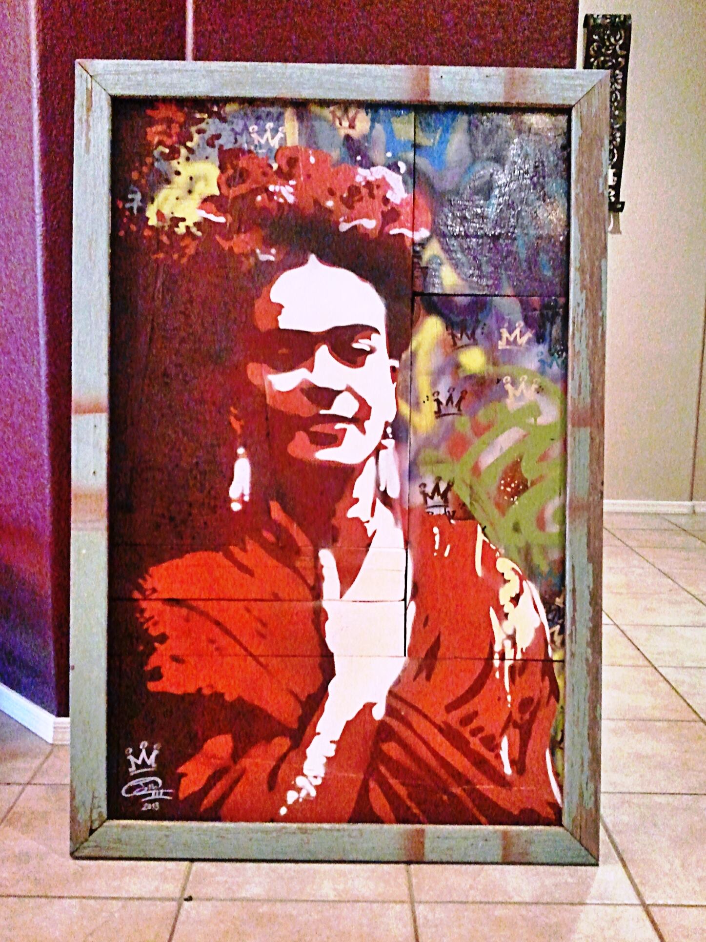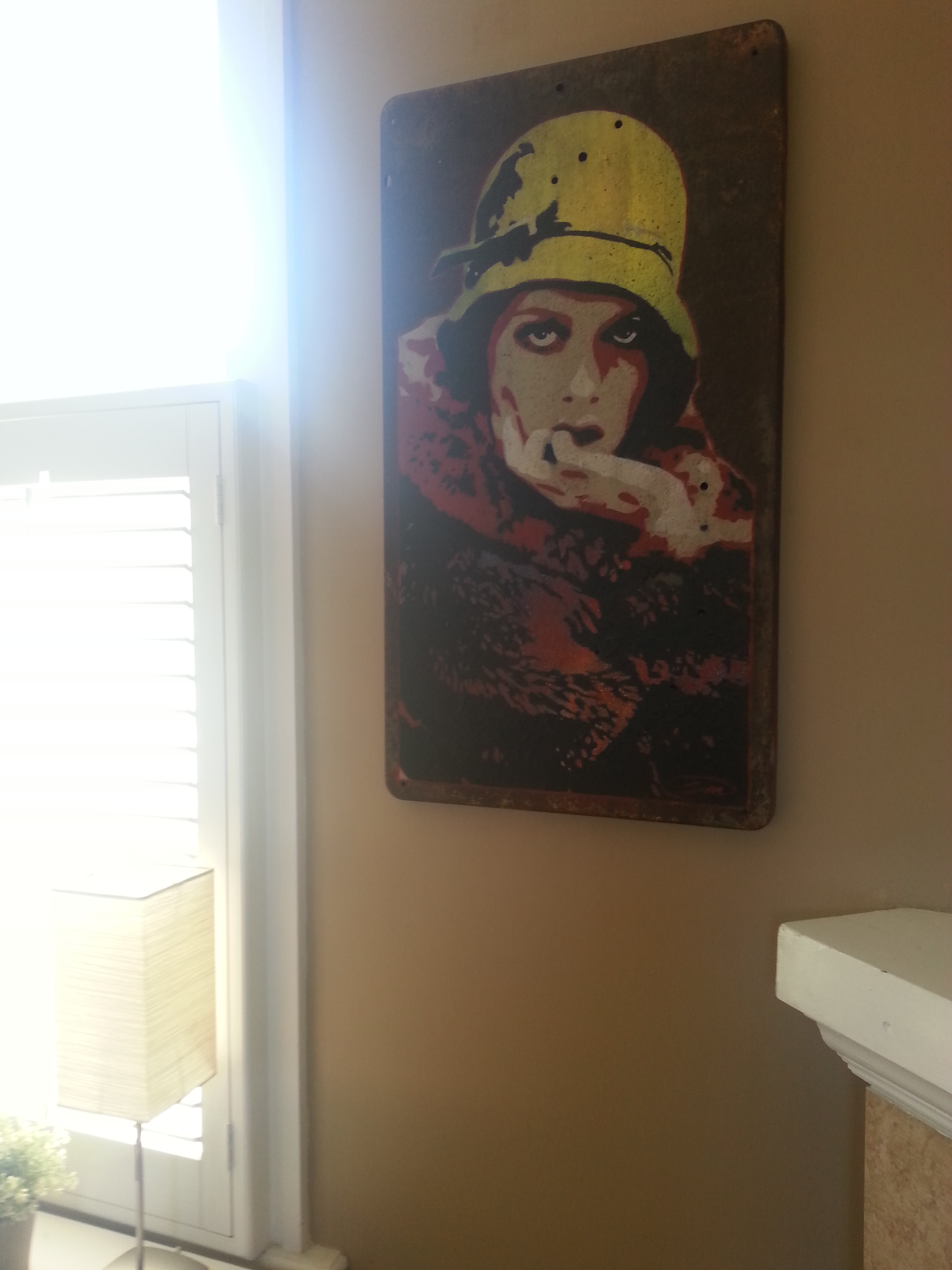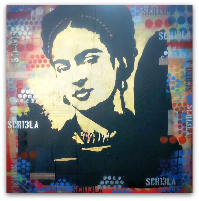 The use of multi-layered hand cut stencils has always been a very prominent feature in James’ work and he continues to use the same techniques and mediums (acrylics, aerosol, inks & enamels) that he began using in 1990. Many of his pieces are created with reclaimed materials such as barn wood, metals and other materials he collects during his travels.
