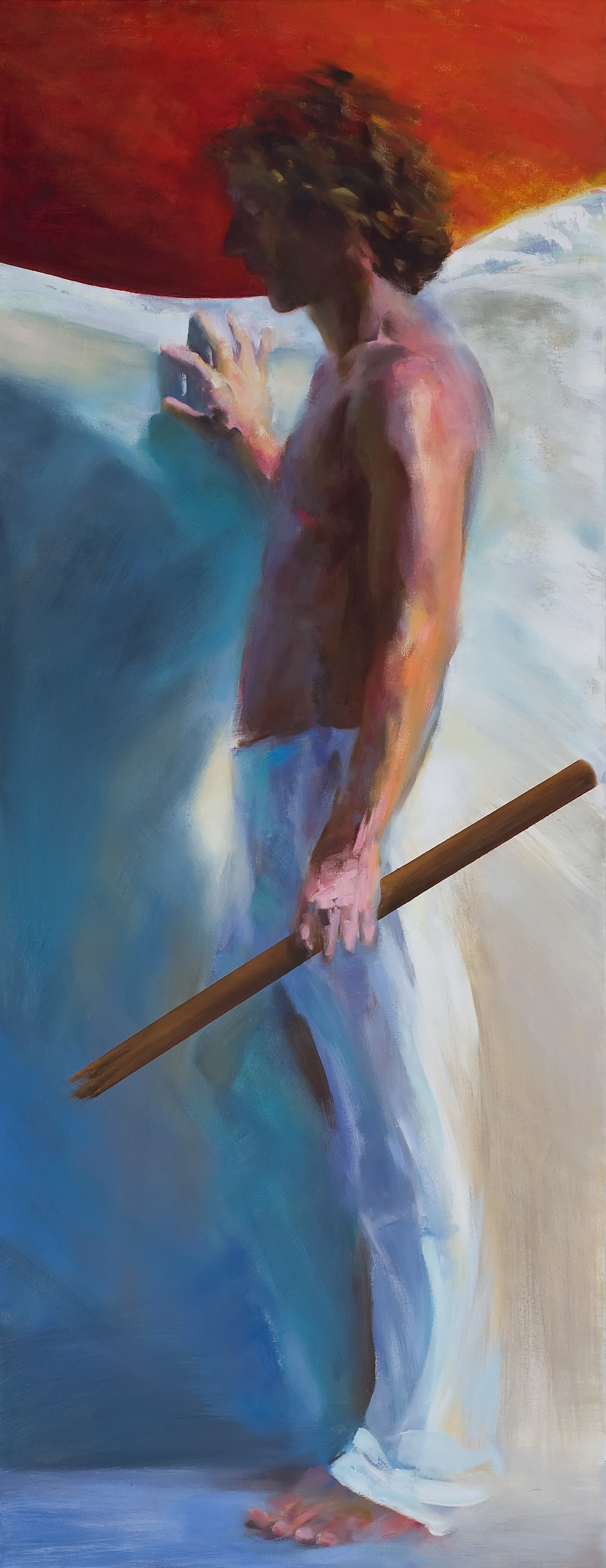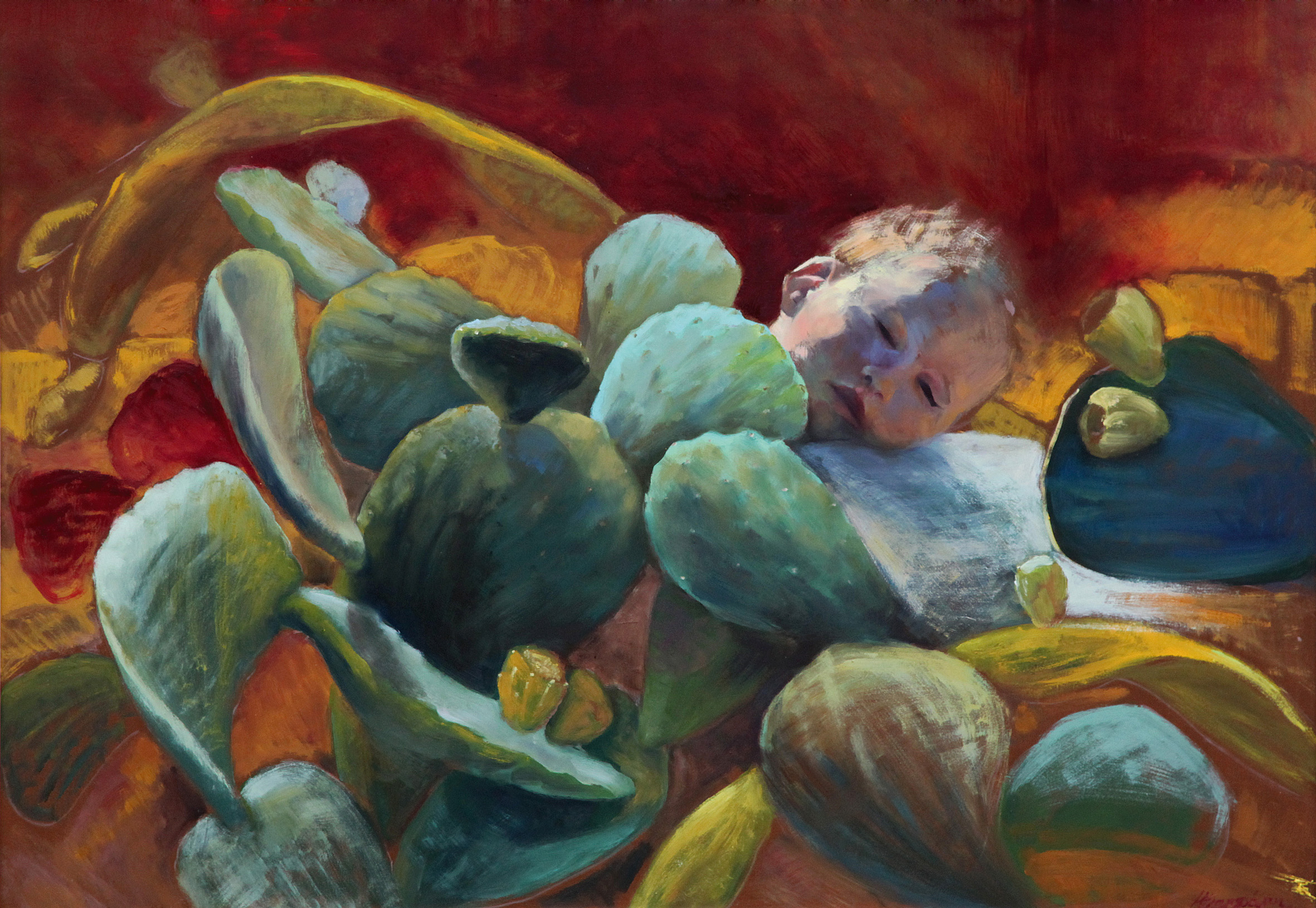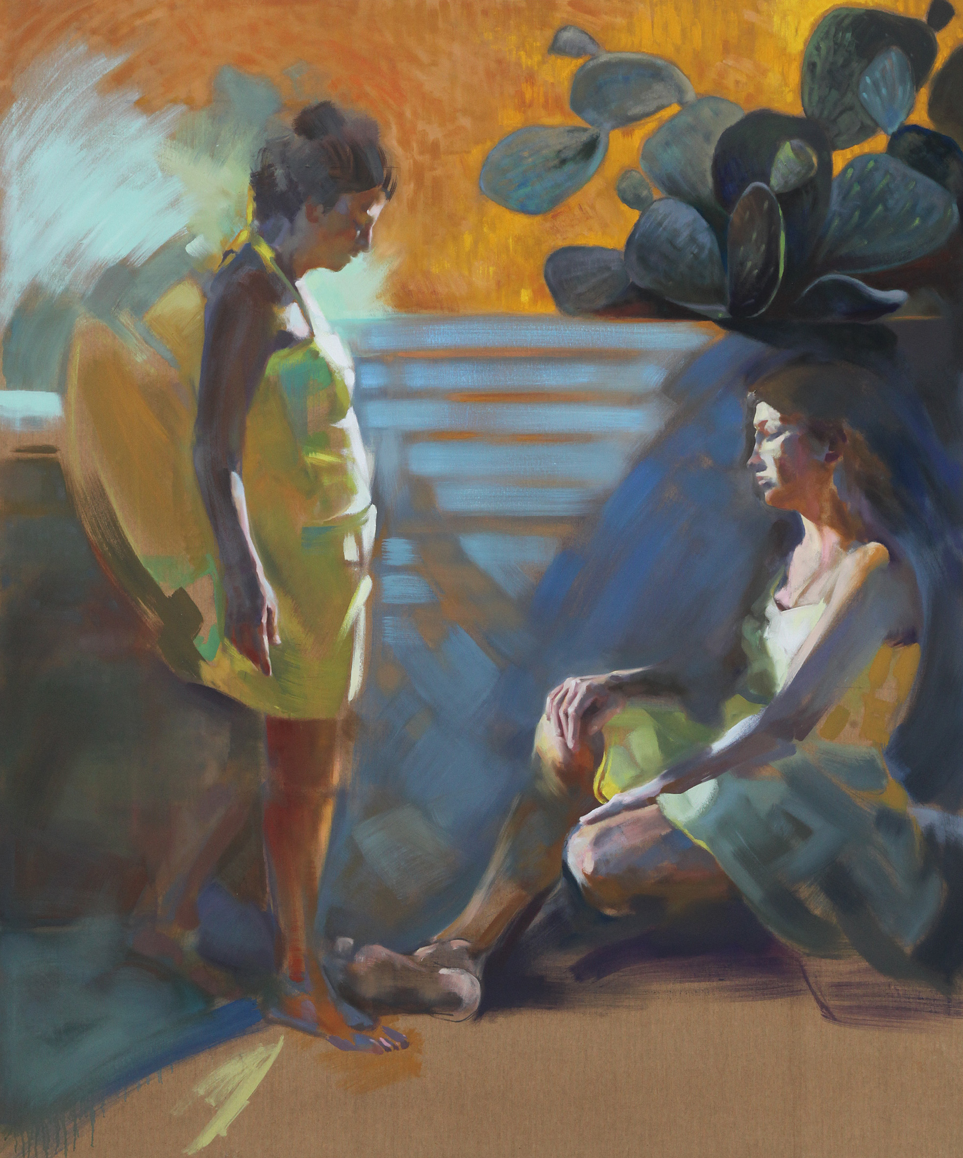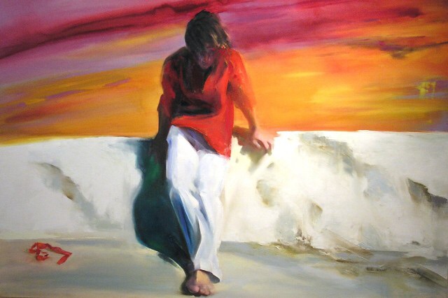 She studied painting at the Faculty of Fine Arts in Aristotle University in Thessaloniki, under professor Vangelis Dimitreas. Her subject matter has always been man and light. Her work she likes to define as expressionist realism. The first years after graduation she produced a number of self portraits and portraits of friends, focusing on the expressive power of the gaze. As her art was maturing she became interested in a more universal approach of the human condition and she turned to life size human figures, caressed by natural or imaginary light, telling their own stories of emotions. Her pictorial space is often shallow, with her figures in primo piano like the alto-relievo of the ancient Greek sculpture. The bright light and pure color in her painting relate to her beloved Mediterranean landscape and pictorial tradition.