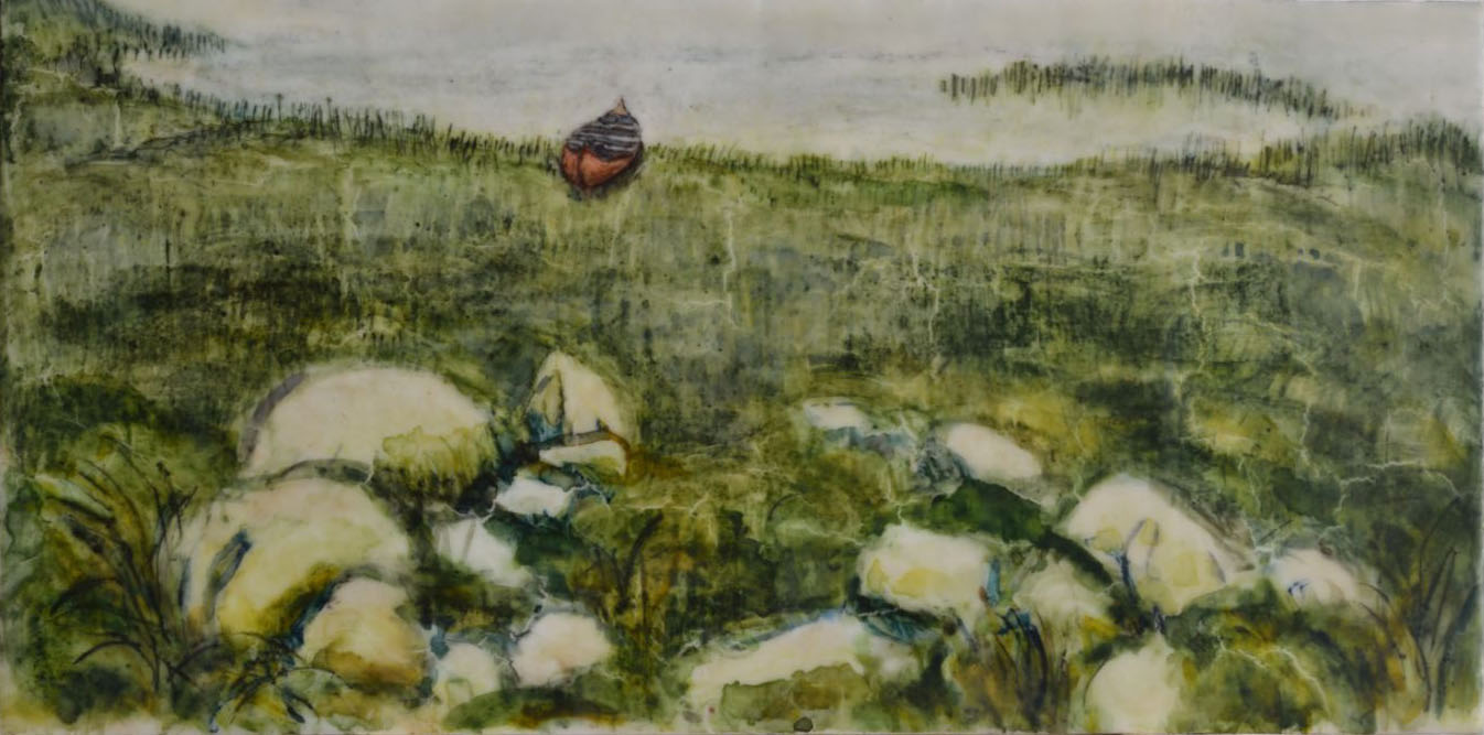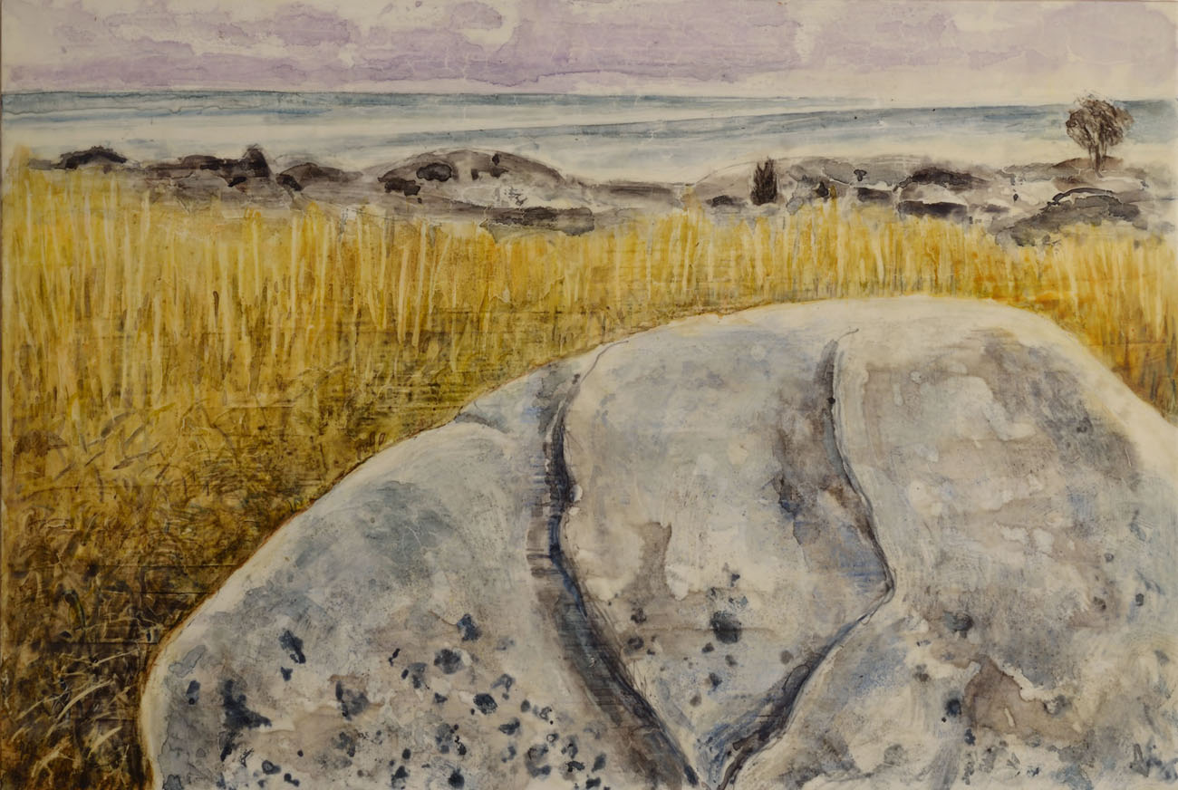 Though she has lived in Portland, OR, since 1990, Anne Mavor claims Woods Hole, MA as her hometown. She has a BA in visual art from Kirkland College and an MFA in creative writing from Antioch University, LA. During the feminist art movement in Los Angeles in the 1980s, she was a member of the collaborative performance group, The Waitresses, as well as doing solo performances. She is the author of Strong Hearts, Inspired Minds: 21 artists who are mothers tell their stories. Since 2009 she has focused on encaustic painting and developed a technique of painting with watercolors on wax. Her ongoing series, Mounds and Stones, is about connecting with her heritage and family.