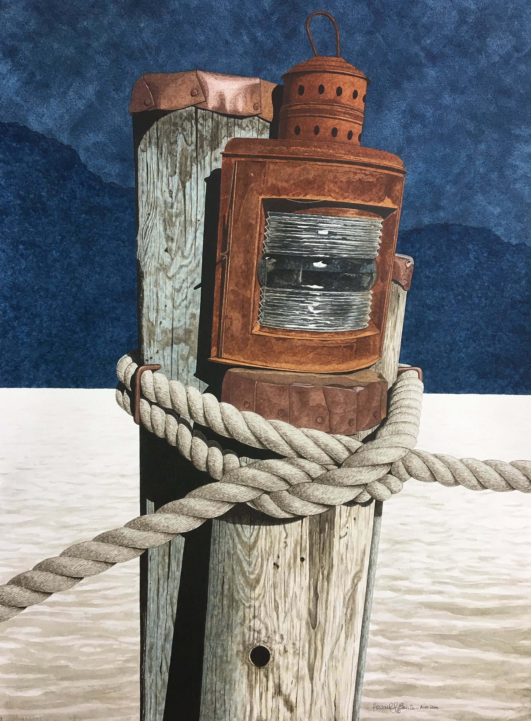 A self-taught watercolorist, Howard J. Eberle has been painting since 1973. Twenty-three years ago, he started painting full time after a career in retail display. “From that experience I was able to glean composition, design, and lighting skills that have influenced my style which I describe as realism with a touch of the abstract.” He works in transparent watercolor using a layering technique and finishing with drybrush to achieve the realistic detail found in his paintings. His painting process starts with strong design- dramatic composition of simple subject matter. To produce a powerful painting is Eberle’s approach to every watercolor.