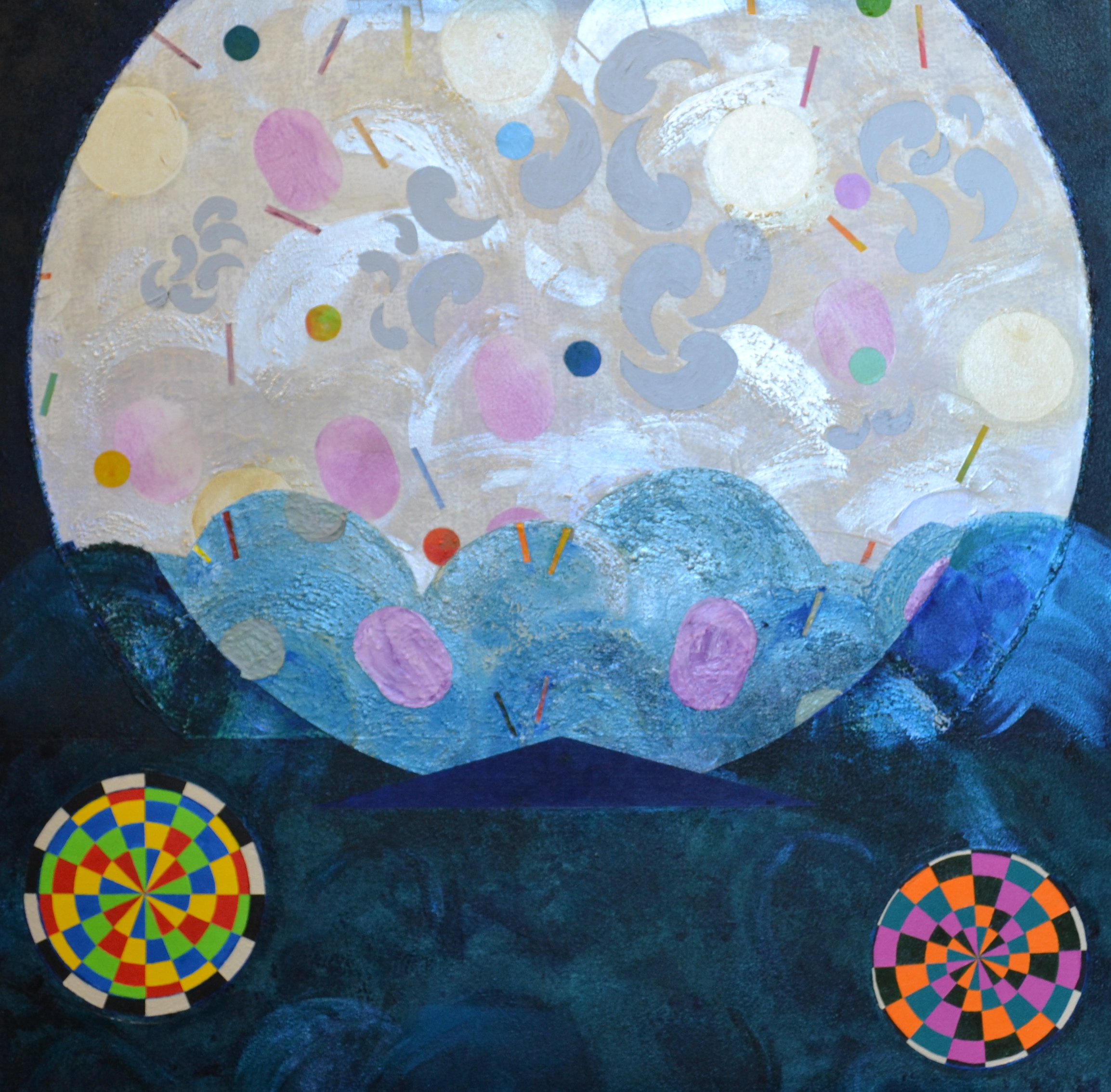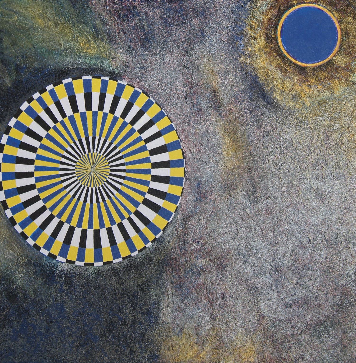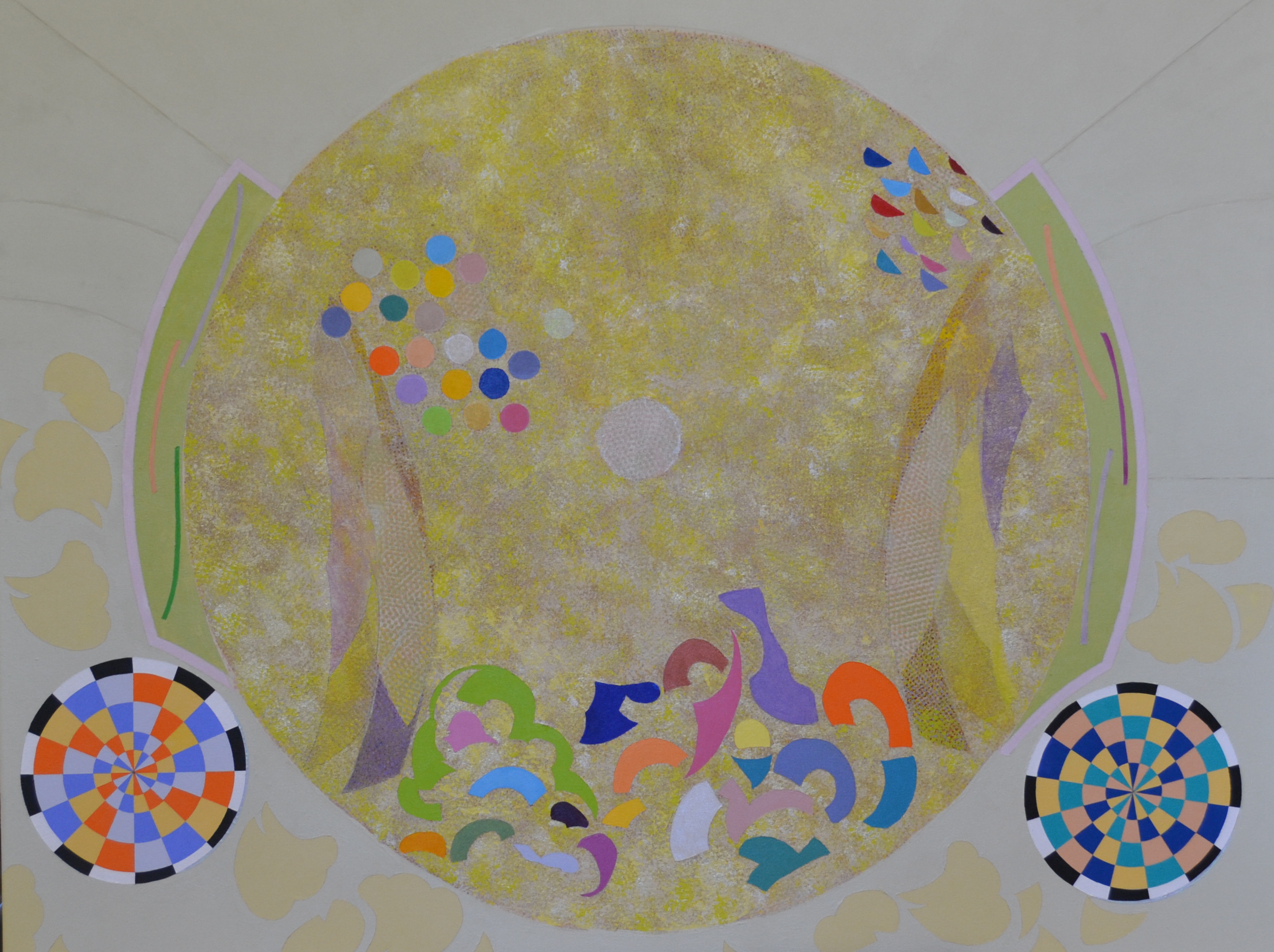 Cynthia Bickley-Green’s early work from the 1960s and 70s is associated with the Washington Color School. Her current compositions creatively explore the phosphene visual field that is generally below conscious perception. Her research suggests that these forms may serve as a source for imagery in many cultures around the world particularly Tantric art of India; aboriginal art of Australia; Native American art; and modern and contemporary art.