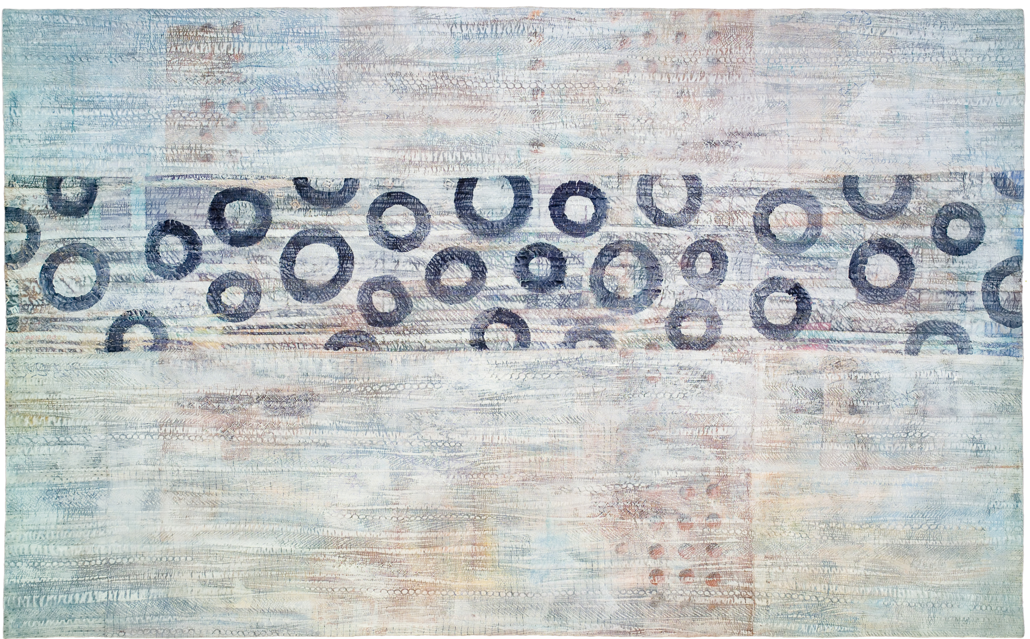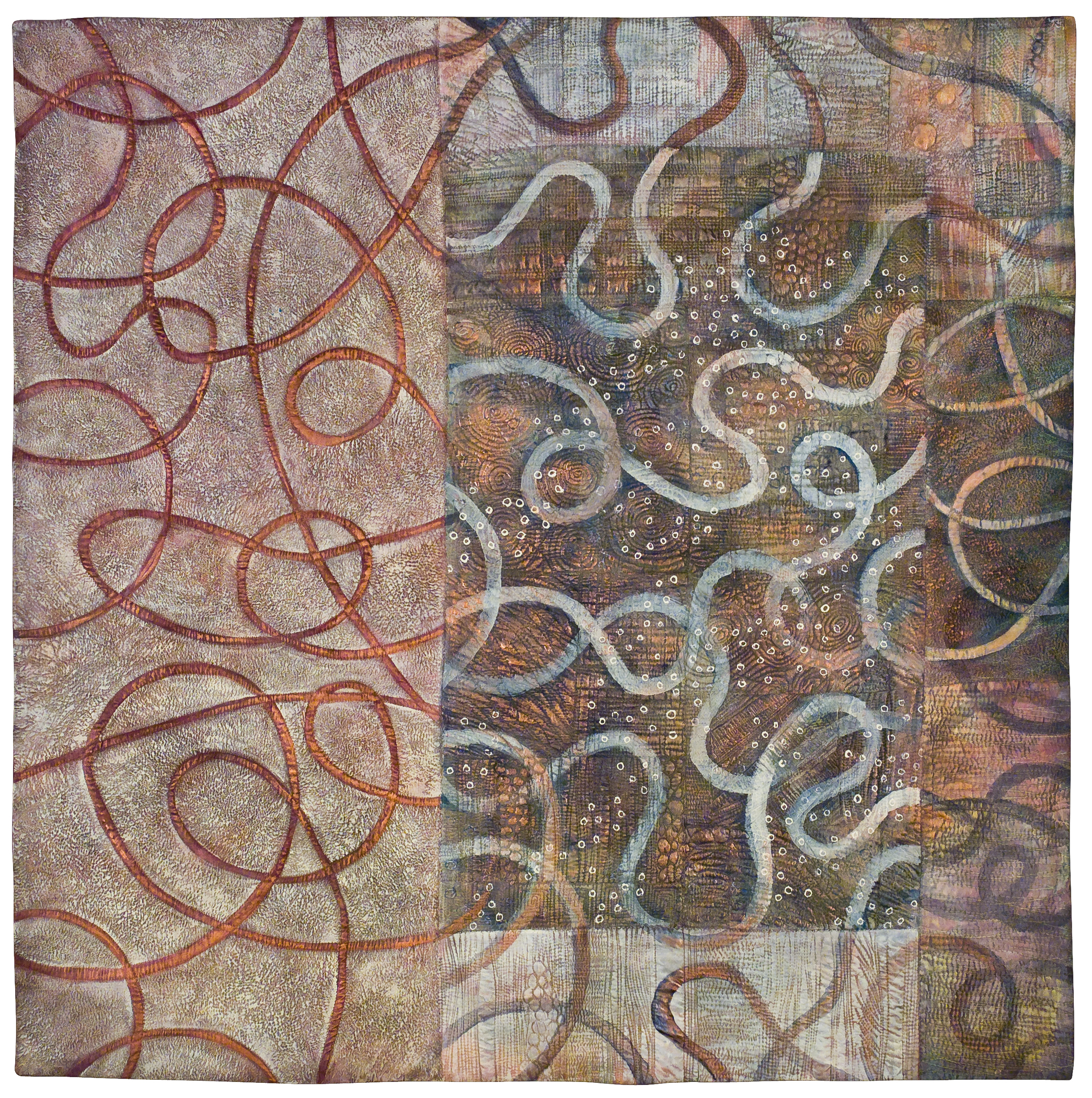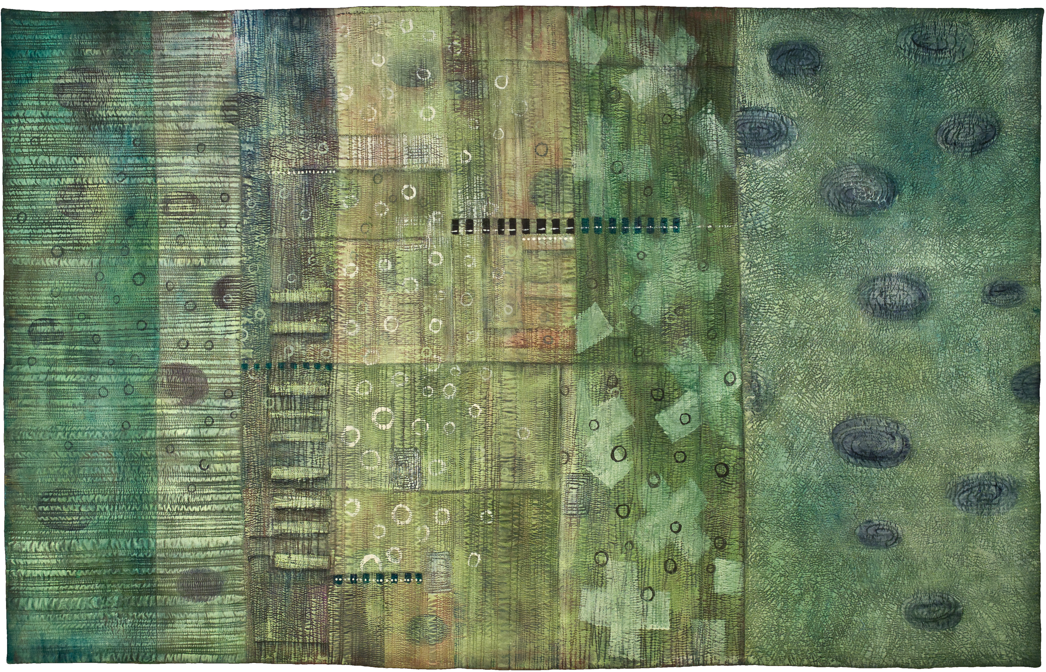 Colorado artist Deidre Adams is inspired by the quiet beauty to be found in the imperfect and the impermanent. Born and raised in Albuquerque, New Mexico, Adams is influenced by the light and color of the southwestern landscape and its beautiful but unforgiving environment. Effects of time and weather are a recurring theme in her abstract paintings and multi-media textile pieces, which focus on the study of shape, color, texture, and mark-making.