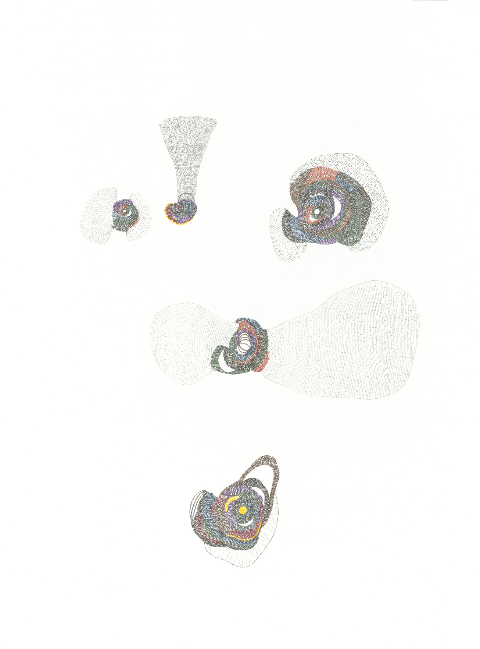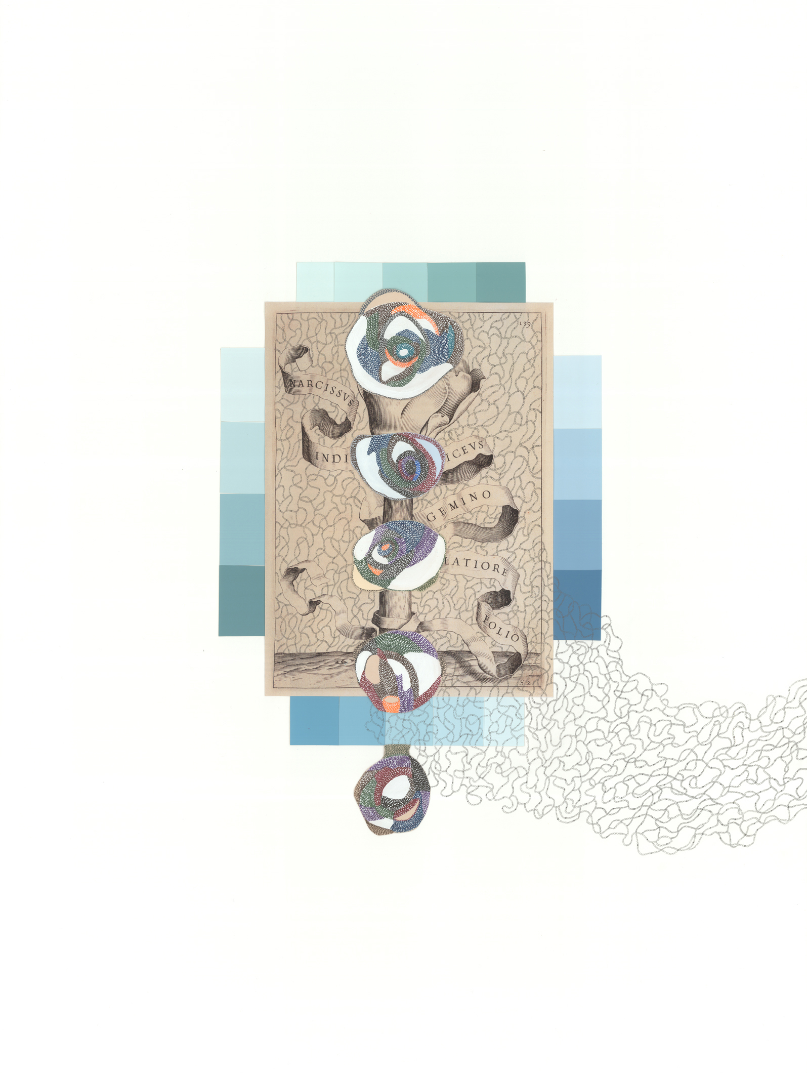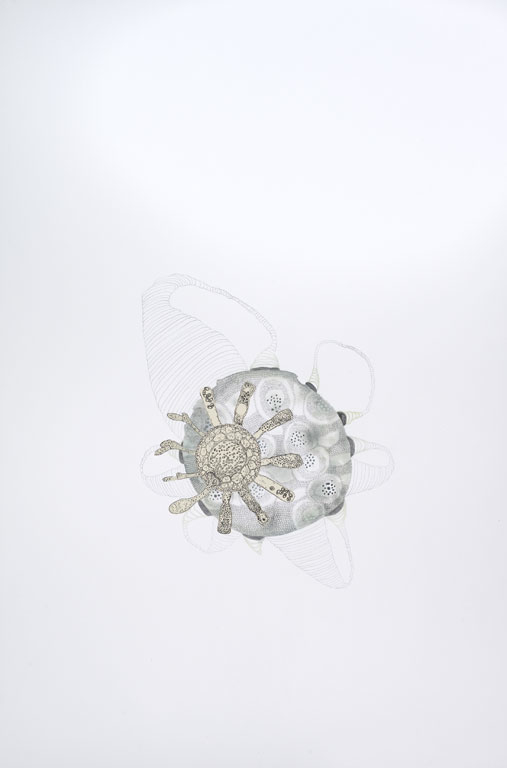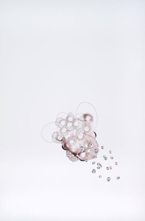 I use gouache, graphite, ink, acrylic and collage to create hybridized versions of seemingly familiar yet peculiar scenarios. In my studio I take on the role of a biologist, dissecting images and classifying forms, paying close attention to the patterns and oddities in nature. Through continuous and detailed reworking, each mark is thoughtfully considered before making it onto the page. Using reference materials such as vintage medical books, 20th century agricultural magazines, and scientific journals I strive to create elegant ecosystems within the context of disturbing genetic realities.