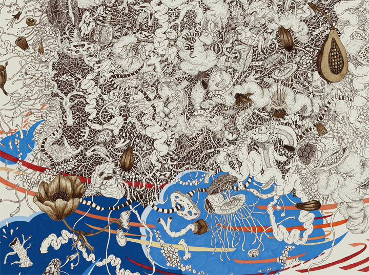 Born in Tokyo, Japan in 1967, Naoe moved to the United States in 1986. She holds M.F.A. in Studio for Interrelated Media from Massachusetts College of Art in Boston. She works mostly in drawings that are highly detailed and executed in mineral pigment, ink and graphite. Naoe has received many awards and grants including Artist Grant from the Massachusetts Cultural Council (2001 and 2006), Artists’ Resource Fund from Berkshire Taconic Community Foundation (2008 and 2013), and the Blanche E. Colman Award from Mellon Trust of New England. Her drawings were published in New American Paintings, Vol. 74 in 2008, and Vol.86 in 2010. She lives in the Boston area.