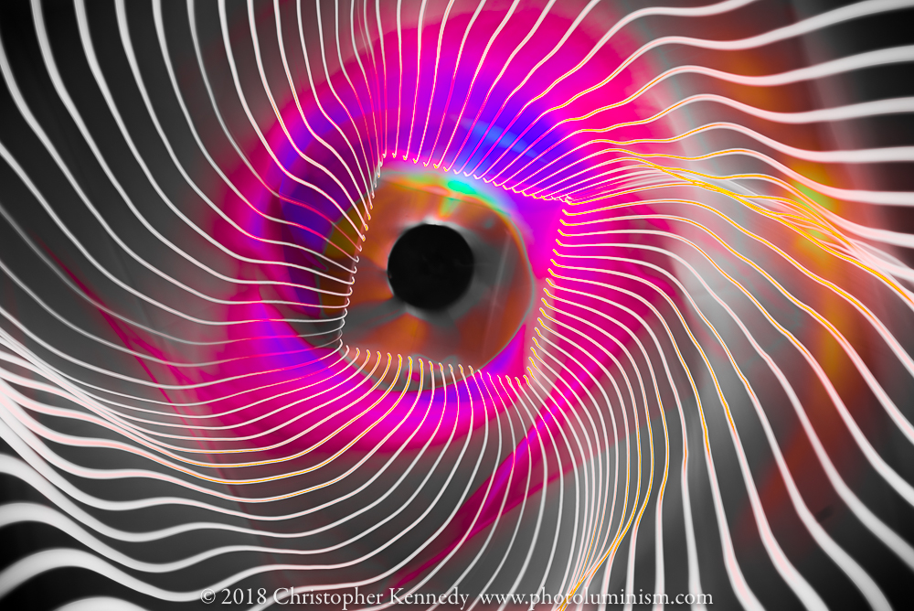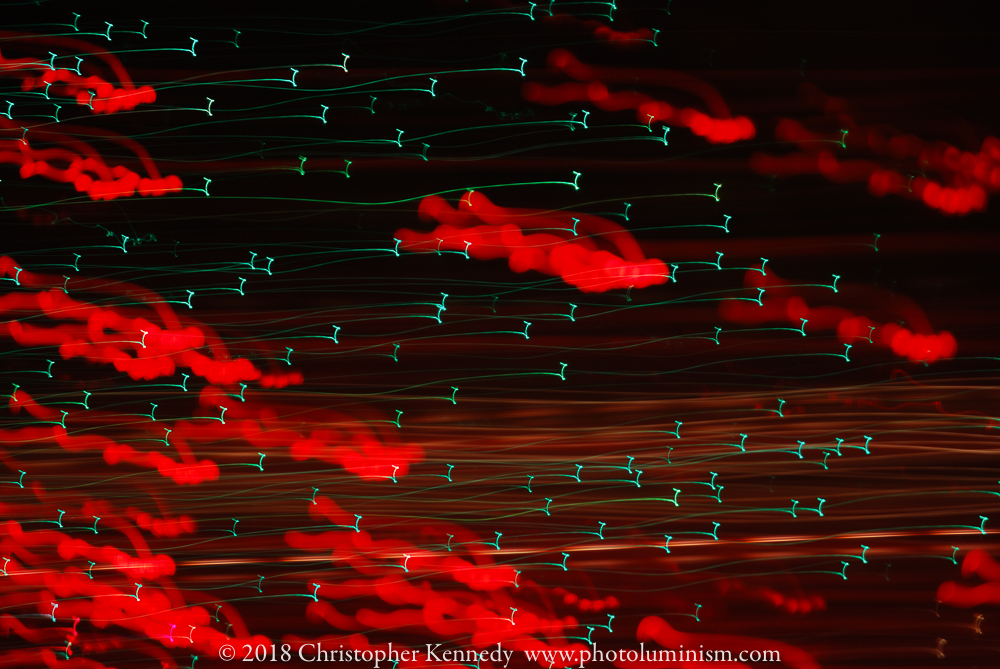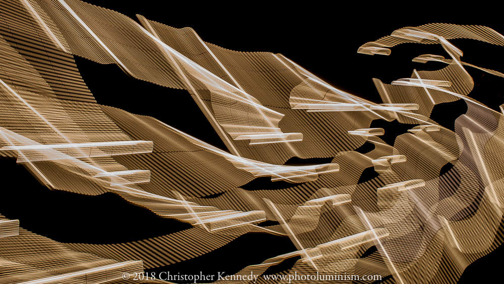 If ever there was an artist who tests the limits of the camera and what it can capture, it’s New Hope resident Christopher Kennedy. What began as a childhood impulse to simply photograph visual oddities grew into what has become “photo luminism,” a personally coined term describing the use of electric light as a sort of paintbrush on the camera’s sensor. Stretching and bending artificial light over long exposures and intentional camera movement creates his abstract images. The collection, two years in the making, consists of two print mediums. Most striking are the large aluminum canvases. Their reflective property “pushes” the light beyond the surface, giving it a 3D effect. Other works are printed on archival paper, which absorbs and pulls the colors inward, creating a deep, saturated look. His latest experiment is using and controlling natural light rather than artificial. Much of Bucks County has inspired his captures, but of late his muse has been the treescapes outside his rural New Hope cottage. Kennedy’s profession for many years dealt with music and sound editing in Hollywood, on projects including “A Chorus Line,” “The Little Shop of Horrors” and the Academy Award-winning score for “Finding Neverland.” Many of his light abstractions are strikingly reminiscent of sound and the waves they create.
