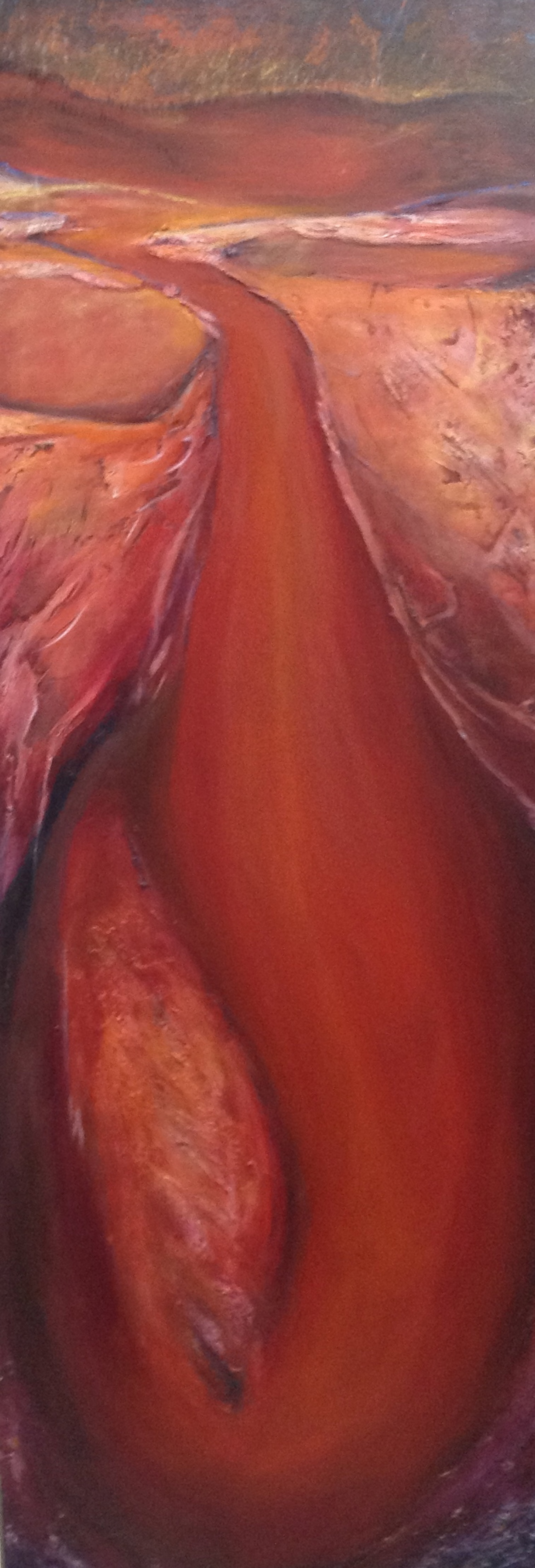 Most of her paintings are inspired by verses of the Holy Quran and current events. Her first series was inspired by the horrific events of 911. These paintings describe her response, as an African American Muslim woman, to the event and media coverage of the attack. As a result of many hours of meditation and constant building and scraping away at images laying deep in the subconscious, Above and Below came into existence.